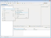 - At the left box open the Project Explorer tab if not already opened. Rightclick at the box and choose New » Dynamic Web Project.