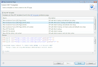 - Create a JSF file: rightclick at WebContent folder of the Playground project and choose New » JSP. Enter the File name test.jsp, click Next, select the template New JavaServer Faces (JSF) Page (HTML5) (which we have definied in the preferences) and click Finish.