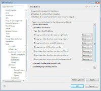 - In the Prefrences dialogue, go to Web » JavaServer Faces Tools » Validation and under Type Assignment Problems set Method expression signature incompatibility to Warning or Ignore if you want to allow JSF action methods return void. I also recommend to set the Unary operation number (and boolean) coercion problems under Type Coercion Problems to Warning or Ignore, because it would unnecessarily give an error when you're using for example UIComponent#getValue() -which has Object type outcome- in EL but you treated it as number or boolean.