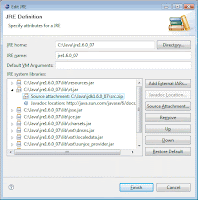 - In the top menu, go to Window » Preferences » Java » Installed JREs. Select the current JRE (it should automatically be the same as you have installed, in this case the jre1.6.0_07, located at C:\Java\jre1.6.0_07) and click Edit. Select the C:\Java\jre1.6.0_07\lib\rt.jar, click at Source Attachment, click at External File, navigate to C:\Java\jdk1.6.0_07, select the src.zip file and add it. Now the source code of the Java SE API is available in Eclipse.