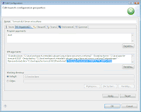- At the left column, under General Information, click Open launch configuration, navigate to tab Arguments, in the field VM arguments add the following argument at the end (separated with a space):