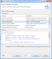 7. In the Preferences dialogue, go to Web » HTML Files » Editor » Templates and click New. Enter name New Facelet Page, select context New HTML, enter description Creates a new Facelet page, copypaste the following snippet in the pattern field and click OK: